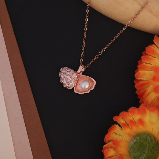 Sparkling Rose Gold Seashell Pendant with Pearl