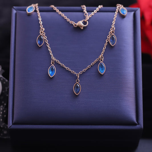 Green Stone Charm with Snake Chain 18K Gold PVD Necklace