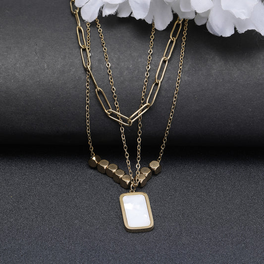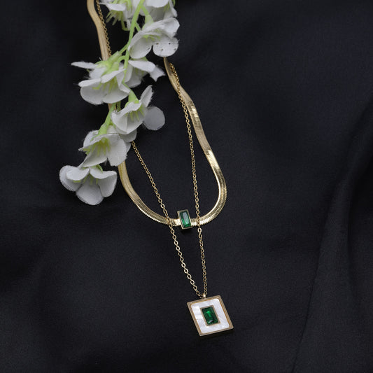 Multi-Layer 18K Gold Plated Necklace with Green & White Crystals