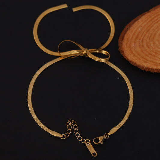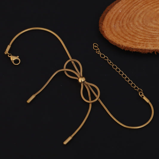 Bow Charm Snake Chain 22K Gold PVD Bracelet