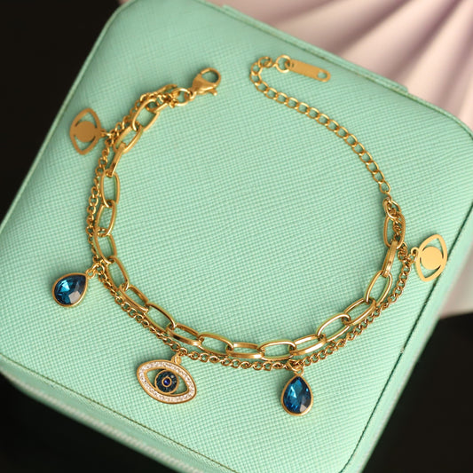 Multi-Layer 18K Gold Plated Necklace with Green & White Crystals