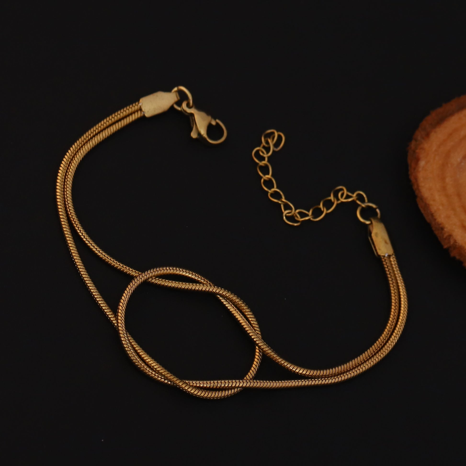 Timeless elegance meets modern craftsmanship in the Eternal Twist bracelet, plated with luxurious 22K PVD gold. Designed with a fluid double-layered snake chain and a graceful central loop, this piece is more than just jewelry — it's a symbol of endless style. Crafted to last, it’s anti-tarnish and hypoallergenic, making it perfect for everyday wear without compromising comfort or shine. Whether worn solo or layered, this bracelet adds a touch of golden charm to any look.