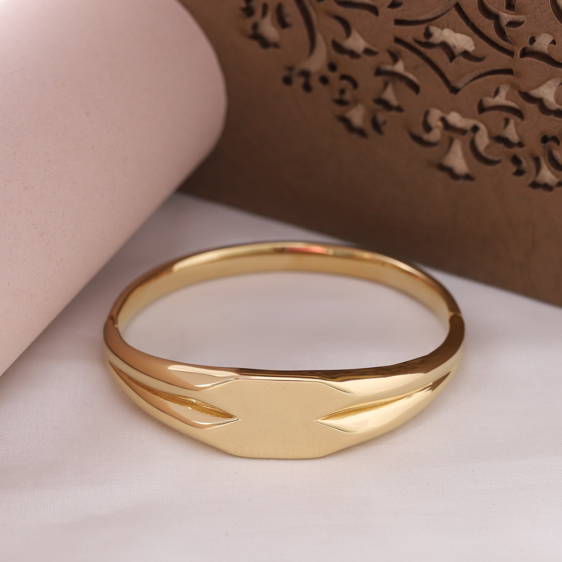 Command attention with the Regal Edge – 18K Gold PVD Signature Cuff, a bold blend of minimalism and power. Crafted from premium stainless steel with rich 18K gold PVD coating, this sleek, sculpted bracelet features clean lines and a strong central form—symbolizing confidence and refined taste. Waterproof, anti-tarnish, and hypoallergenic, it’s built for lasting shine and everyday elegance.